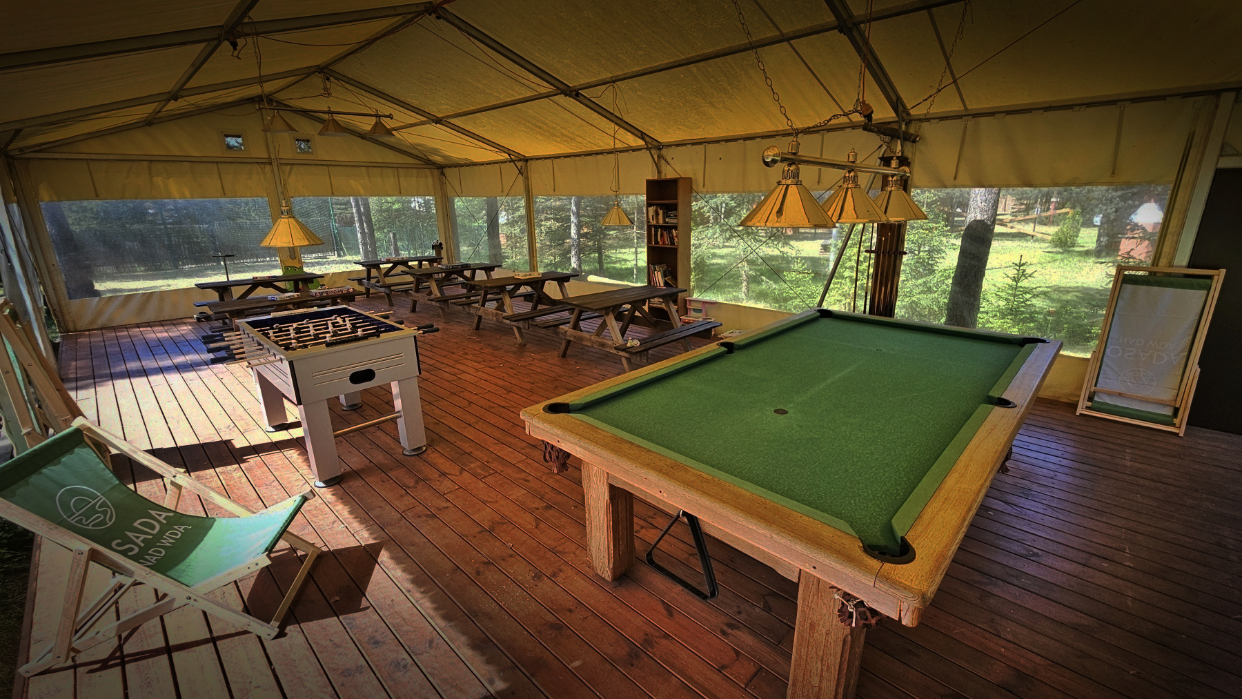 Na terenie osady znajduje się miejsce na ognisko, idealne na wieczorne spotkania przy płomieniach, oraz namiot rozrywkowy. Bez względu na pogodę, goście mogą korzystać z bilardu, piłkarzyków (trambambula), tenisa stołowego oraz biblioteczki z książkami.